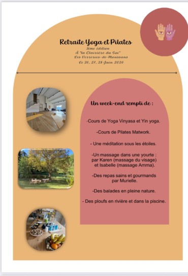 - Cours de Yoga Vinyasa et Yin Yoga, ainsi que de Pilates Matwork.